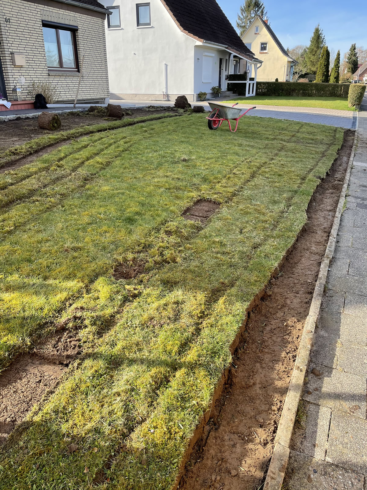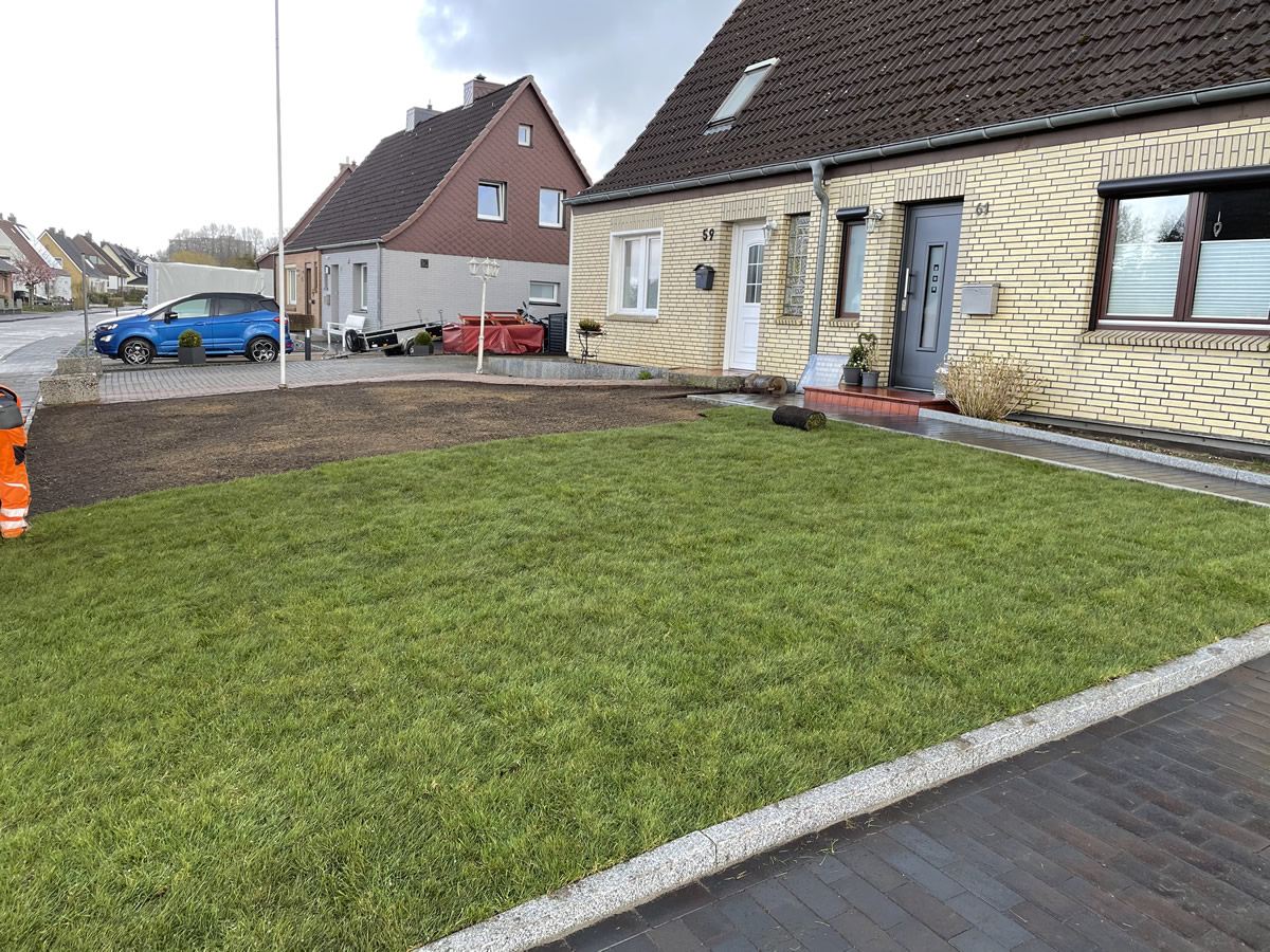 Wir liefern,verlegen und bereiten Ihre gewünschte Fläche für Ihren neuen Rollrasen vor.